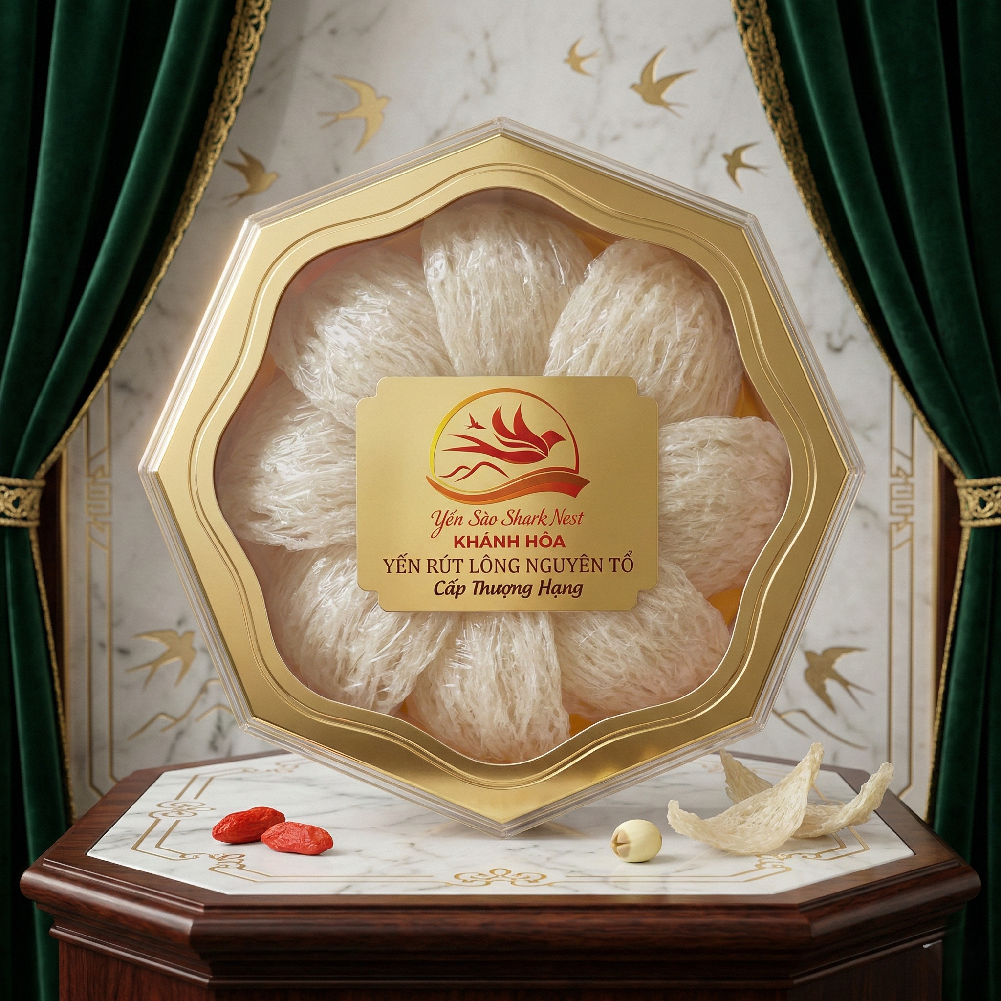 Tổ yến được đóng gói trong hộp cao cấp, thiết kế tinh tế, phù hợp làm quà biếu doanh nghiệp, quà tặng sức khỏe cho người thân, đối tác quan trọng.